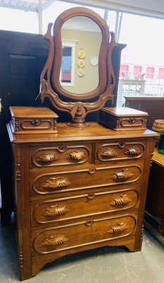 /Victorian Antique Vanity With Mirror / Vanity Dresser With Long Trifold Mirror Antique Victorian With Bench Stunning Antique Vanity Vanity Mirror Dresser Vanity : Very well looked after and in very good.